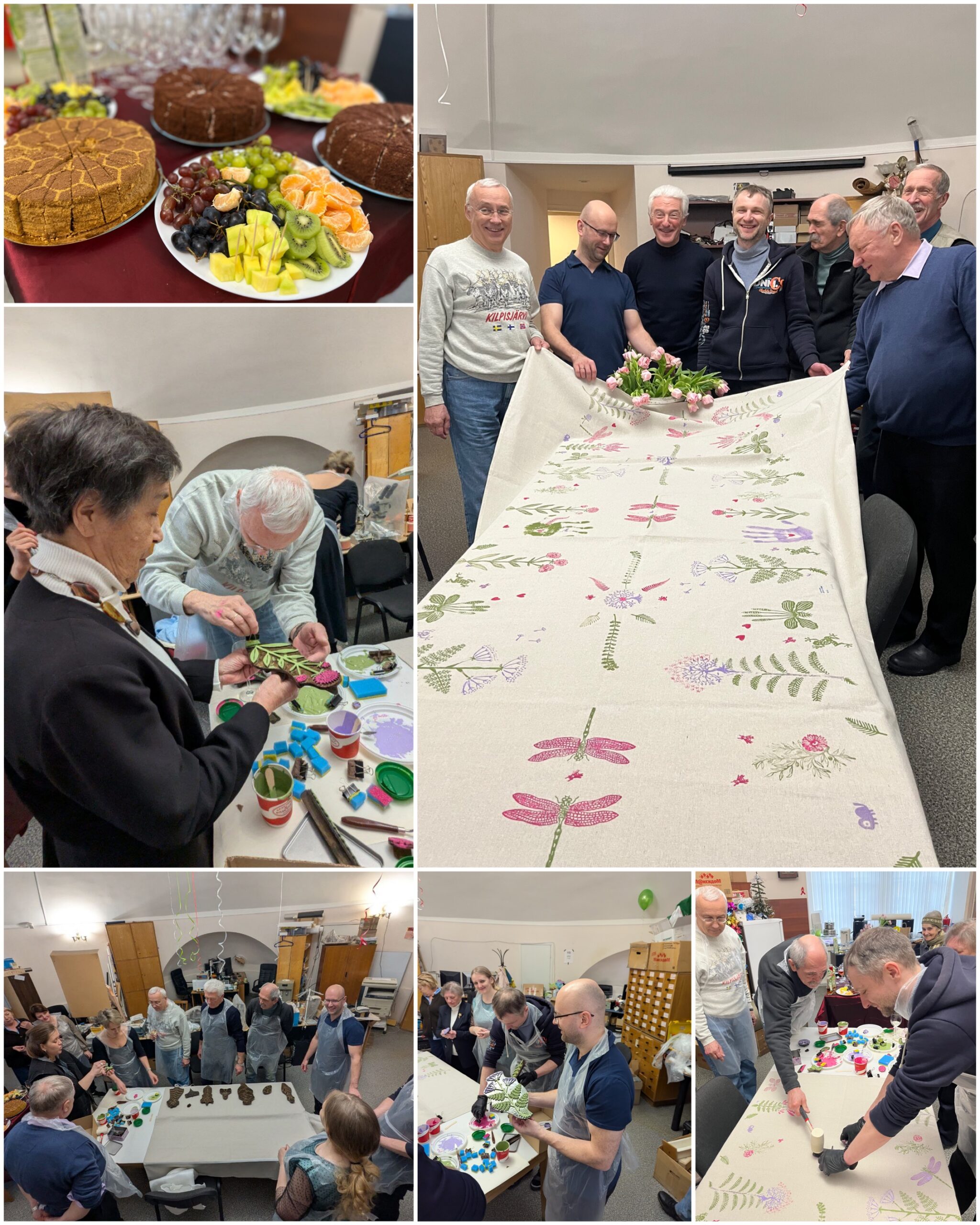 Накануне праздника ППО был организован мастер-класс для изготовления индивидуальных подарков сотрудникам-мужчинам. На носках были отштампованы аббревиатура организации и веселые изображения для настроения.
